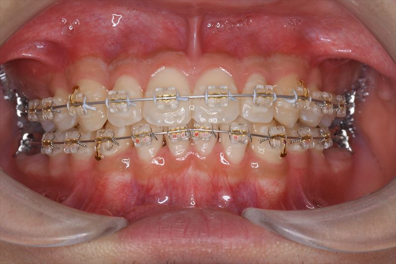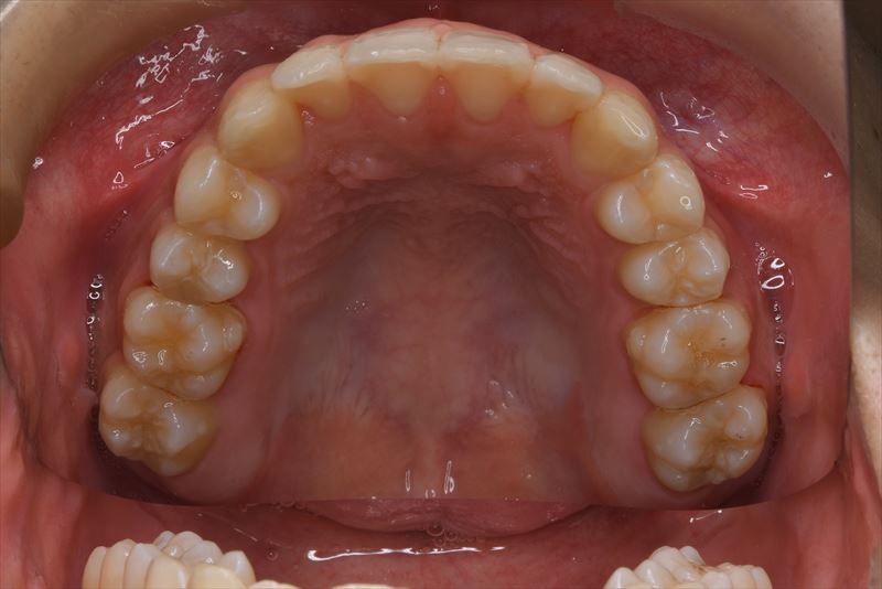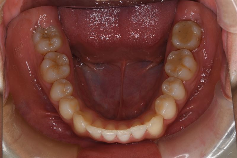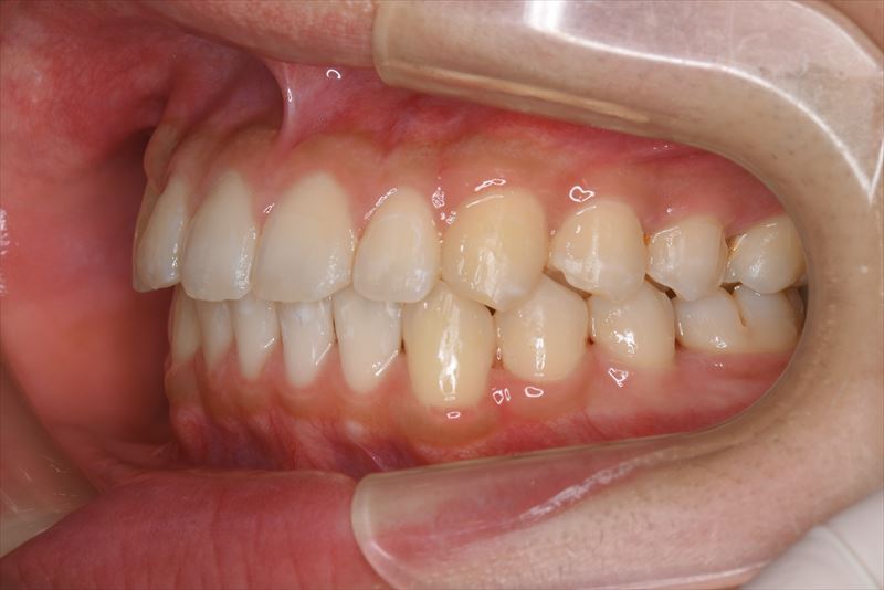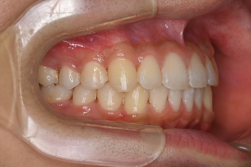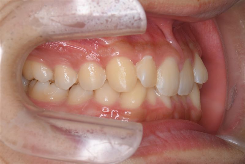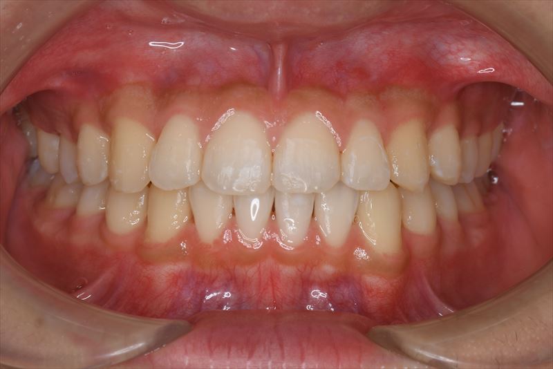 叢生、口唇の関係から非抜歯で治療を行いました。適正なオーバーバイトになり、良好な咬合関係となりました。