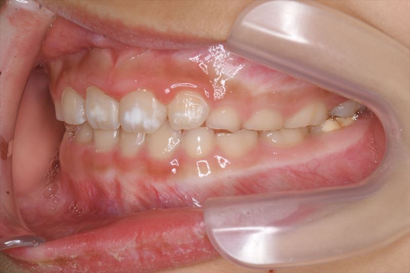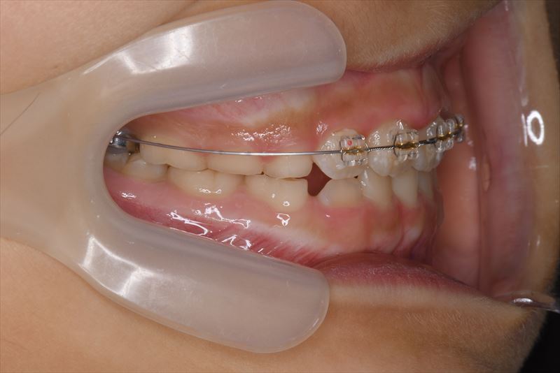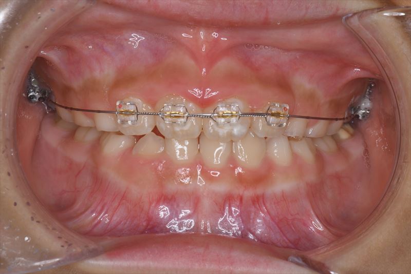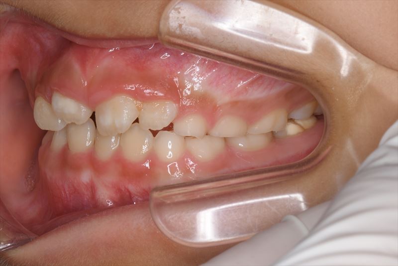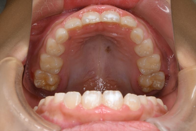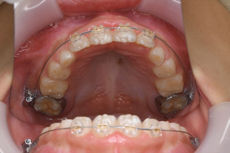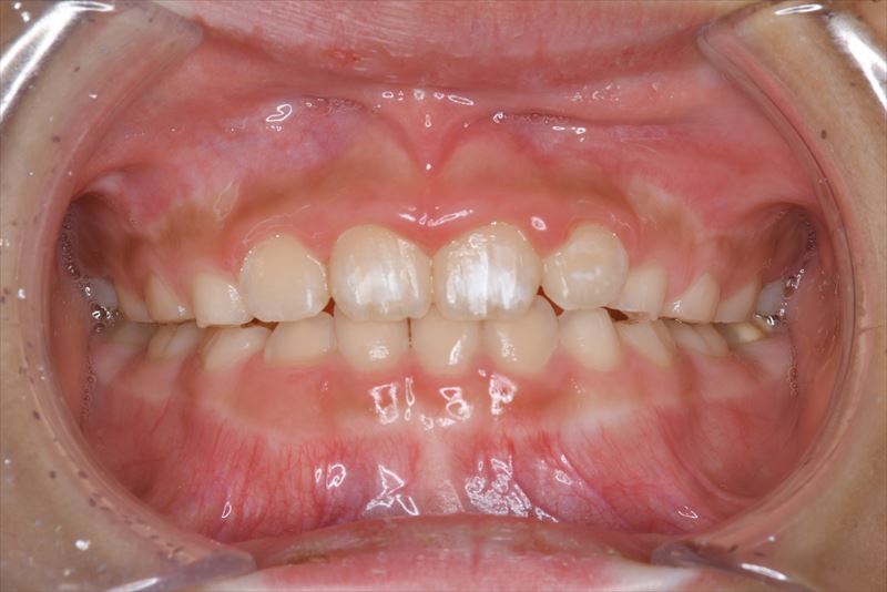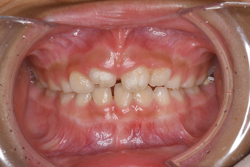 前歯の排列と上顎臼歯の遠心移動を行いました。今後も永久歯の萌出に合わせて治療を進めていきます。